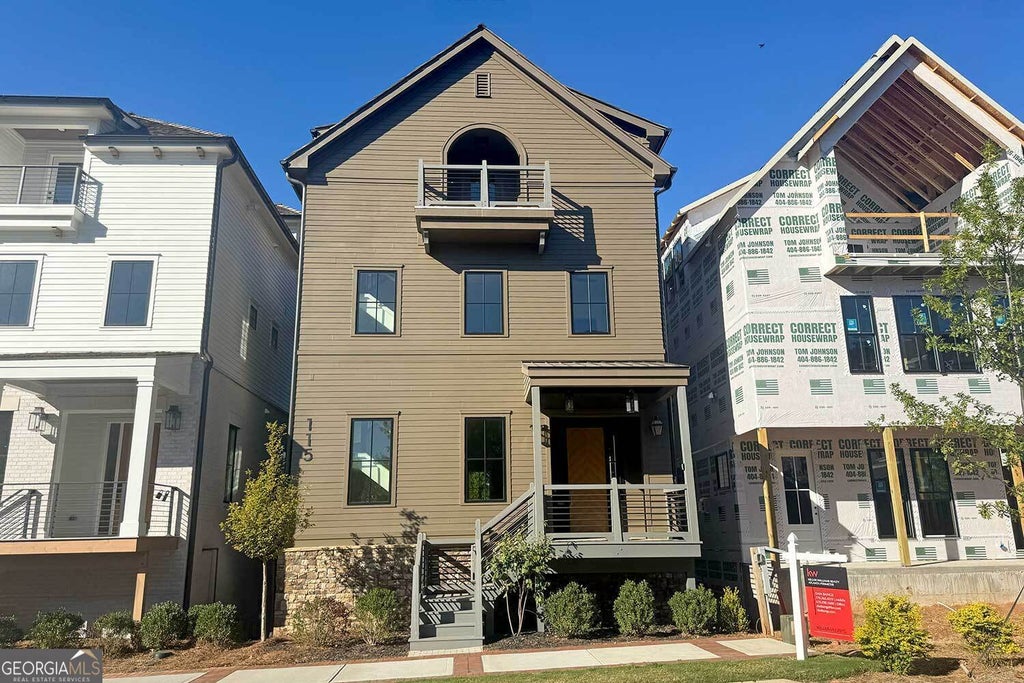 Stunning NEW CONSTRUCTION in A+ downtown Alpharetta location, within easy walking distance to both Historic Downtown and Avalon, with direct access to the Alpha Loop! This newly designed single family home checks all the boxes, with a striking exterior, multiple covered outdoor living spaces, 3-car garage and included elevator. The 3-sided gourmet kitchen features a large center island and abundant cabinetry, top-of-the line appliances including a 48" Wolf range, built-in SubZero refrigerator and under counter beverage center and Cove dishwasher. Quartz countertops and designer backsplash are included. The main floor is sure to impress, with open spaces and lots of natural light. The focal point of the family room is an elegant linear fireplace that can be seen from the dining room and the kitchen. The switchback stairs are elegant and practical, leading you to the second floor where you will find the primary suite and a secondary bedroom. The primary suite is the perfect retreat, complete with luxurious ensuite bath with double vanities, standalone tub and separate shower and a large walk-in closet. A covered rear terrace is the perfect place to begin or end your day, with views to the Alpha Loop. The secondary bedroom features an ensuite bath with large shower, and a walk-in closet. The top floor is the perfect place to relax and unwind or entertain friends and family. The elevator opens the a large bonus room with bar, and an inviting covered terrace with enviable views to the Loop. Large enough for ample seating or even a hot tub, this is a space that you'll return to again and again. An additional guest bedroom is found on this level, along with a full bath including shower and a walk-in closet. On the ground floor you'll find a 3-car garage, elevator access to all 3 floors above, a covered side porch for easy access to the outdoors, and a mudroom/ drop zone. The beautiful design of this home is highlighted on the exterior with elegant stack stone around the foundation, cedar shake roof, and smooth lap siding minimal reveal. Still time to make some selections. Ready now!