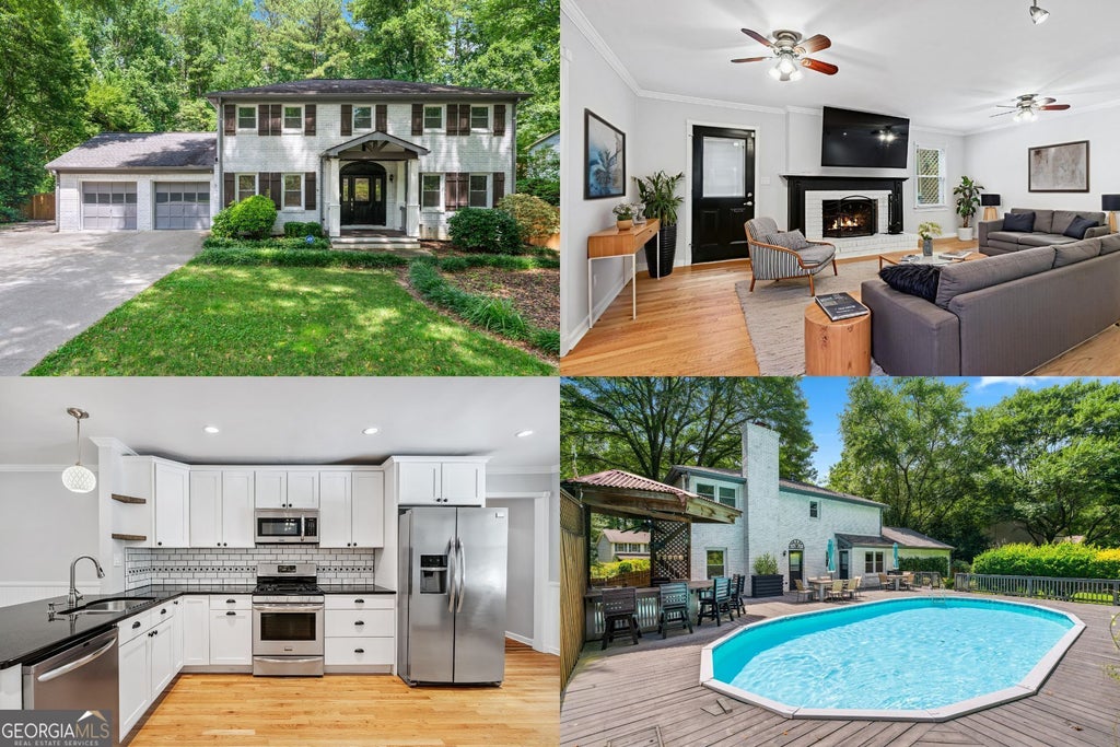 Your Dream Retreat Just Minutes from Marietta Square! Tucked away on a quiet street in the back of a charming subdivision, this beautifully updated home is where style meets serenity. From the moment you arrive, you'll be welcomed by the classic elegance of a freshly painted four-sided brick exterior and warm oak hardwood floors that run throughout the home. Inside, the spacious dining room invites unforgettable gatherings, while the bright eat-in chef's kitchen-with ample counter space, breakfast bar, and modern appliances- makes everyday living and entertaining effortless. Off the kitchen, you'll find a thoughtfully designed mudroom, powder room, laundry area, and convenient garage entry-perfect for busy routines. The cozy fireside family room opens to an expansive deck, outdoor bar, and cooking area, all overlooking a private in-ground pool-your own personal oasis for summer fun and quiet evenings under the stars. Upstairs, the oversized primary suite is a peaceful escape with dual closets, an open vanity, and private water closet. Three additional spacious bedrooms, a generous guest bath, and hallway storage complete the upper level. Outside, nature lovers will fall in love with the lush backyard-featuring a large fire pit, seating area, storage unit, and plenty of space for a vegetable or flower garden. Recent updates include a brand-new pool control panel and upstairs HVAC unit. Bonus: the TV in the living room and washer/dryer stay with the home! Don't miss this rare opportunity to enjoy peaceful living just moments from all the shops, dining, and events of vibrant Marietta Square!