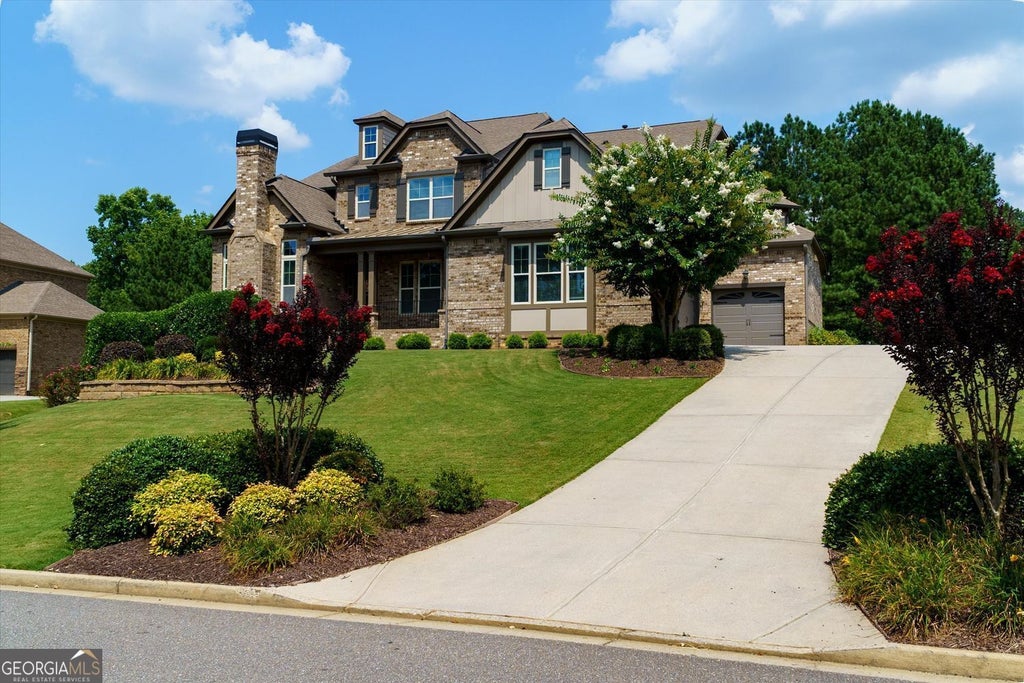 4-sided brick estate home featuring 6 bedrooms and 5.5 bathrooms on full, finished basement. The covered front porch welcomes you into the well lit spacious dining room with coffered ceiling and wainscoting, offering hardwood flooring situated across from the vaulted office with door featuring a stone fireplace. Two story foyer with wainscoting and a wrought iron spindled staircase. Spacious eat in kitchen with large sit at breakfast bar with granite countertops, Travertine tile backsplash, abundant dark stained cabinetry, stainless steel vent hood, pot filler, gas cooktop, electric oven, built-in microwave and dishwasher all open to the keeping room with stone fireplace and great room. Spacious walk-in pantry and mudroom station. Spacious bedroom on the main level with sitting room with built-in bookcase cabinetry and full bathroom. Butler's pantry with wine refrigerator. Large primary bedroom upstairs with trey ceiling with ceiling fan and sitting room. Spacious vaulted primary bathroom with double granite countertop vanities, tile flooring, soaking tub, spacious walk-in Travertine tile shower and large walk-in closet. Secondary bedrooms with jack and jill bathroom. Media room and craft room/bedroom suite with full bathroom upstairs along with the spacious laundry room with built-in cabinetry. Partially finished walk out basement with recreation room, Billiard room, workout room, full bathroom, sauna and storage room. Do not miss the spacious deck overlooking the inviting pool and fenced beautiful backyard.