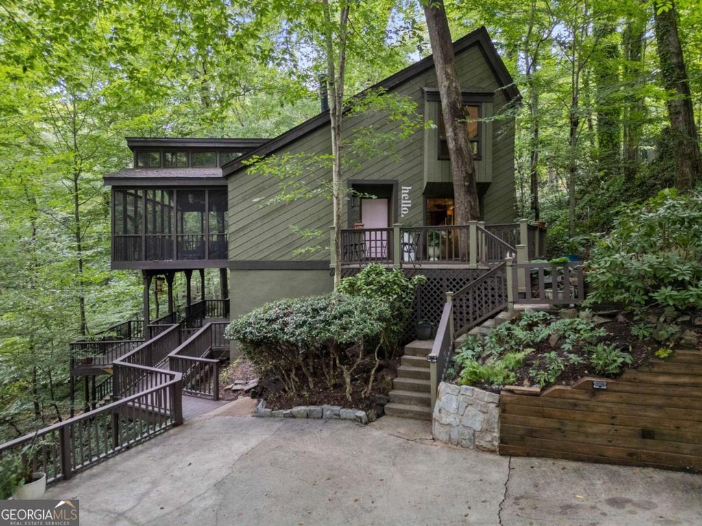 Welcome to 510 Forest Valley Road, a hidden gem tucked away in the trees yet minutes to Buckhead, Sandy Springs City Center, and major conveniences. This 3-bedroom, 2,000+ SF home offers a lifestyle you won't find anywhere else at this price point: multiple outdoor living spaces, a running creek, and a screened porch that feels like a private treehouse oasis. Step inside to a light-filled open layout with hardwood flooring, vaulted ceilings, and timeless mid-century character. The updated primary suite is located on the main level, featuring a renovated bathroom with new tile shower and flooring. The open kitchen, dining, and great room flow seamlessly to the expansive screened porch - the heart of the home - overlooking serene wooded views and the creek. Downstairs, a versatile terrace level opens to a covered deck, perfect for entertaining or quiet evenings. Secondary bedrooms are spacious with unique architectural details, sitting areas, and vaulted ceilings. Highlights: Rare ITP home with outdoor living + creek Updated primary bath + fresh interior touches Multiple decks, screened porch, and private wooded lot Easy access to GA-400, Buckhead, and Sandy Springs City Center This is the best of both worlds - a natural retreat inside the perimeter without sacrificing location or convenience.