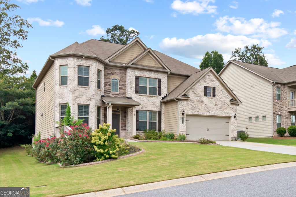 Welcome to this beautifully maintained brick-front home, located in one of the area's most desirable communities and school districts. With thoughtful details, spacious living areas, and a backyard made for gatherings, this home is designed to fit the needs of today's busy families. Step inside to a bright, welcoming foyer with hardwood floors that shine like new. The main level features a private office with double doors ideal for working from home, as well as a formal dining room ready to host holidays and celebrations. The heart of the home is the upgraded chef's kitchen, perfectly positioned with a view of the family room. A large island offers space for casual dining, morning coffee, or evening conversations, making it a true gathering spot. A main-level bedroom with a full bath adds flexibility for guests or extended family, while the 2-car garage ensures everyday convenience. Upstairs, the primary suite is a retreat of its own, complete with a spacious sitting area (2nd fireplace) that can serve as an office, reading nook, or private lounge. Three additional bedrooms and bathrooms provide plenty of room for everyone. Enjoy the outdoors on the covered back patio, overlooking a leveled yard ideal for backyard barbecues. All this, just minutes from top-rated schools, shopping, dining, and Highway 400. This home blends comfort, function, and location and it's ready for its next family!