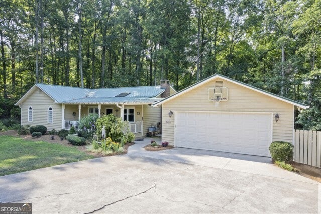 Charming Cottage-Style Home with Guest House on Nearly 2 Acres - No HOA! Rare opportunity! This beautifully maintained property offers two homes on almost 2 private acres with no HOA just minutes from Lake Lanier, GA-400, and downtown Cumming. The main home is full of cottage-style charm and in excellent condition, featuring a main-level master suite with vaulted ceilings, double vessel sinks, and an oversized dual rain shower. The open living space includes a cozy family room with skylight, hardwood floors throughout, and a kitchen with granite counters, travertine tile, and a charming cottage-inspired island. The sunlit dining room overlooks a wooded, private backyard. A finished basement offers a bedroom, living space, and extra storage. The second home is fully renovated, ideal for guests, in-laws, or rental income. It includes 2 bedrooms, 1.5 baths, granite countertops, beautiful cabinetry, wood flooring, and a spacious living area. Located in a peaceful, quiet area just 0.5 mile to GA-400 and close to parks and shopping. Move-in ready and a true must-see!