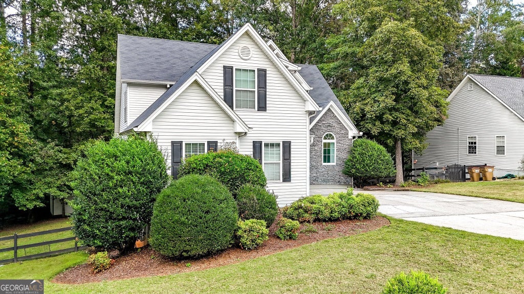Beautiful home in North Forsyth County. Great for multi generational living. Backs to nearly 1000 acres of private undeveloped land. Primary suite on main, 3 bedrooms upstairs, & 1-2 bedrooms in basement level. Easily convert the basement to an inlaw suite. Many recent upgrades/updates including new roof Oct 2025, new primary bathroom on main level with walk in shower. Nearly 3/4 acre lot, with fenced backyard, lots of mature trees and even an outbuilding for storage/She-Shed/workshop. Community offers pool and playground. Looking for space to spread out? Come check out this great home in North Forsyth County.